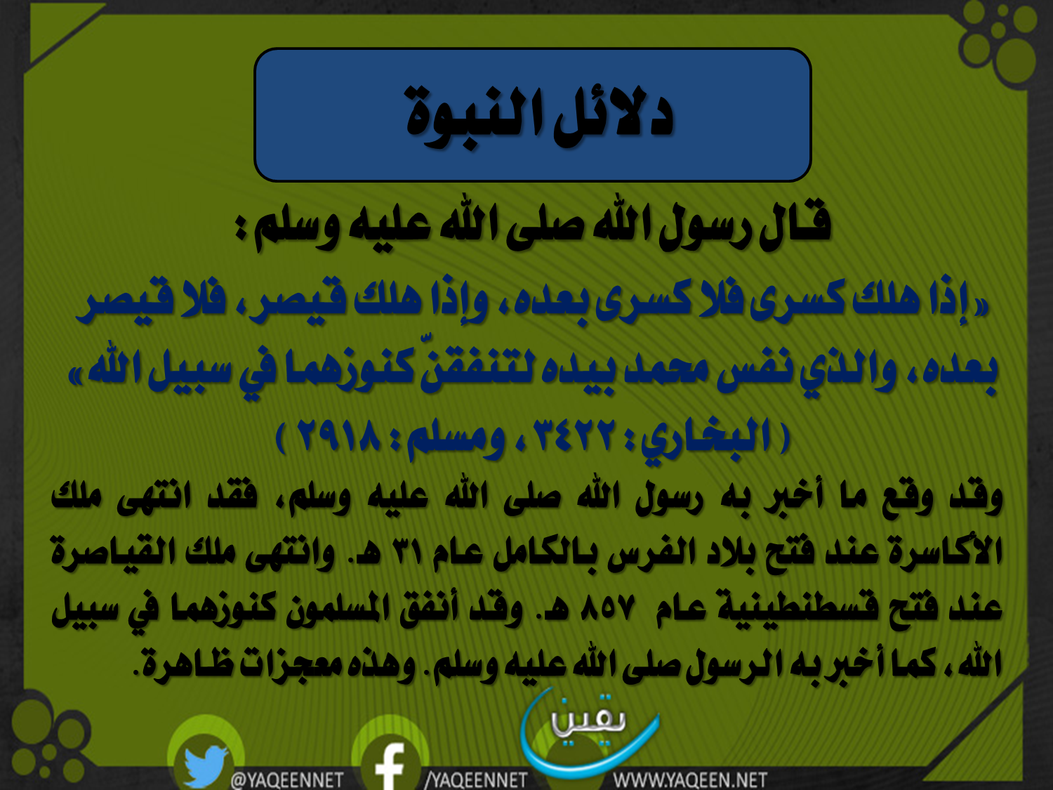 حديث الرسول ﷺ عن هلاك كسرى وقيصر