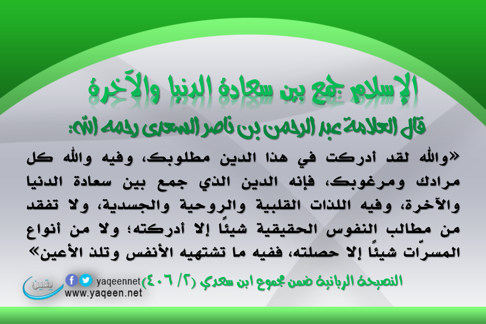 الإسلام جمع بين سعادة الدنيا والآخرة