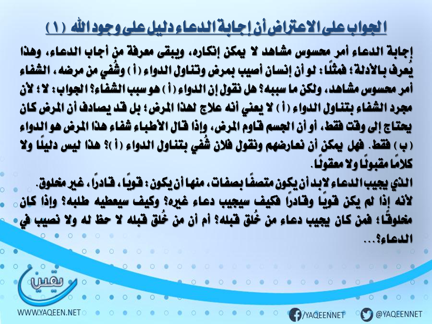 الاعتراض على أن إجابة الدعاء دليل على وجود الله (1)