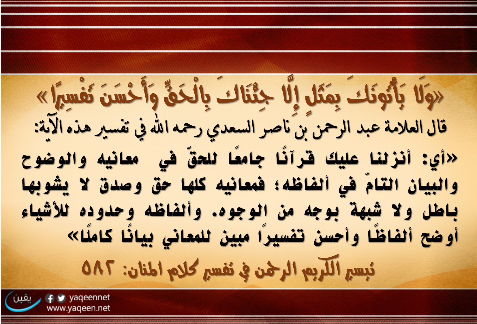 ولا يأتونك بمثل إلا جئناك بالحق وأحسن تفسيرا